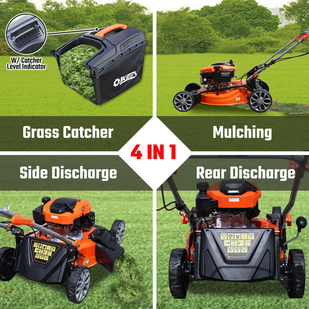 4-in-1 versatility: choose from mulching, catching, side discharge, or rear discharge depending on your lawn’s needs.