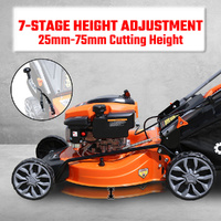 7-stage height adjustment: easily set the perfect cutting height (25–75 mm) with a single lever.