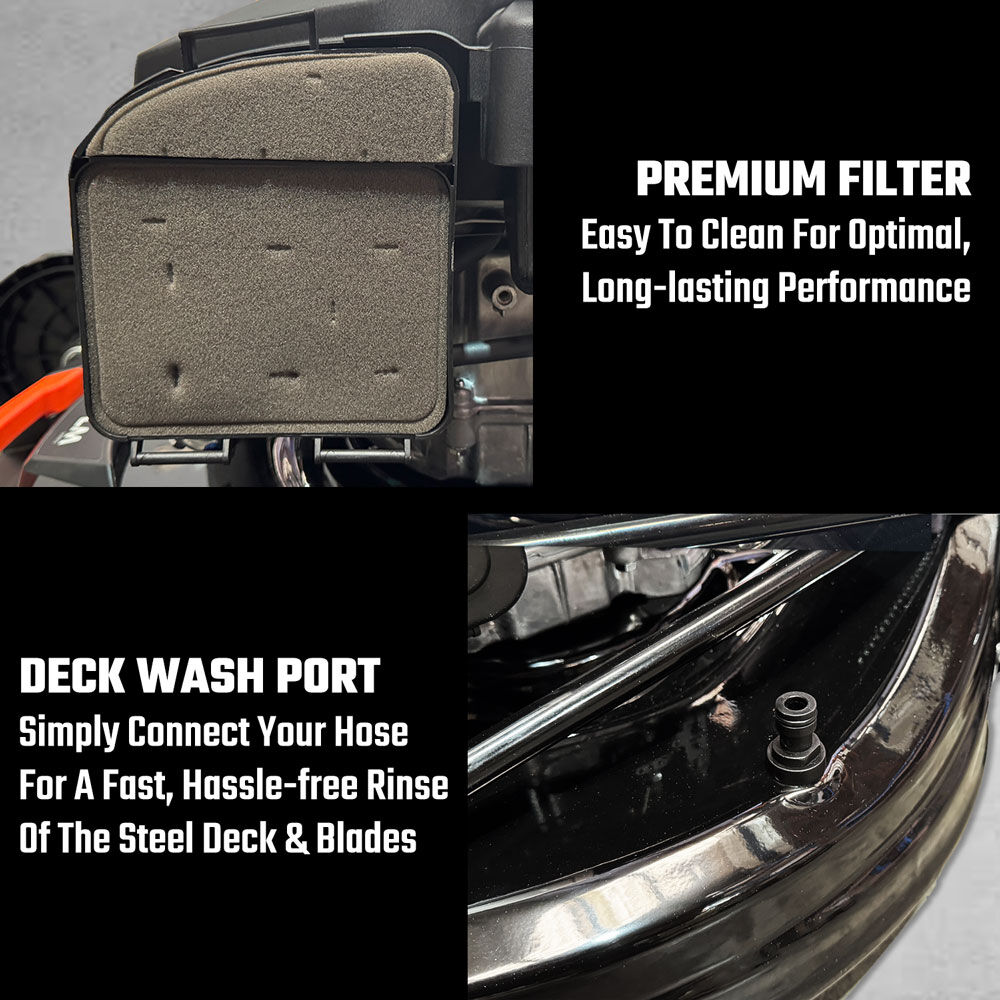 22" cutting width: covers more ground in fewer passes for faster mowing.
