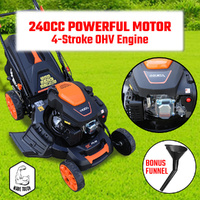 Powerful 240CC engine: delivers strong, reliable performance for tough grass and uneven terrains.