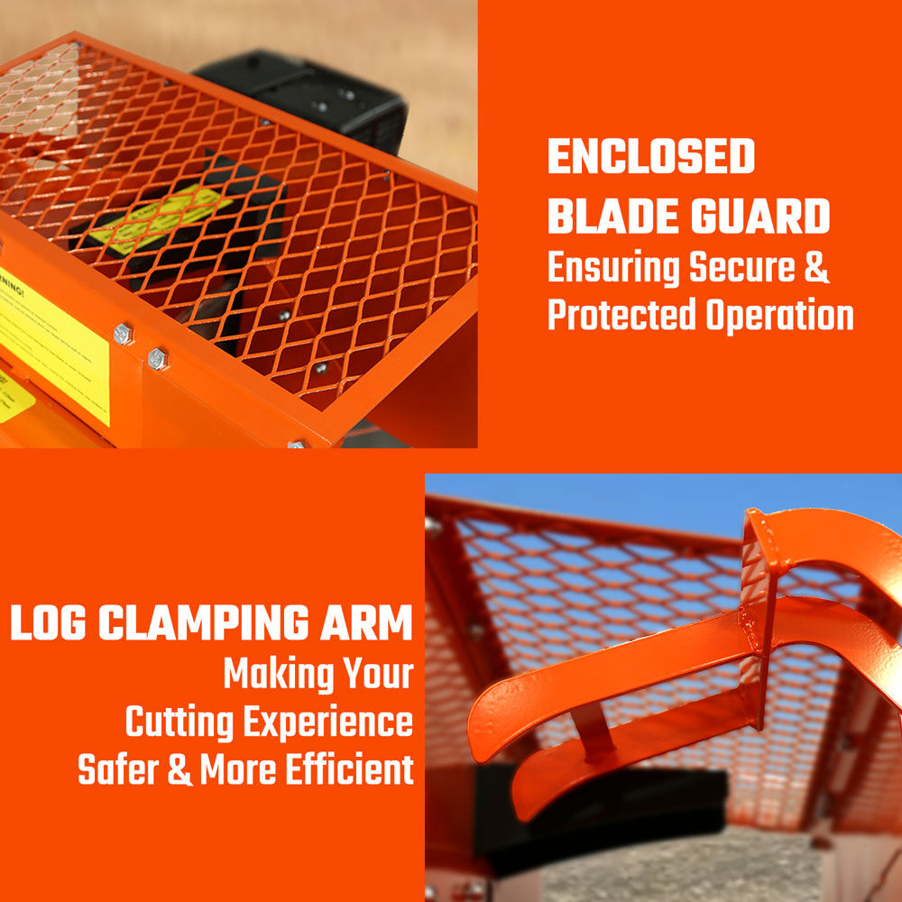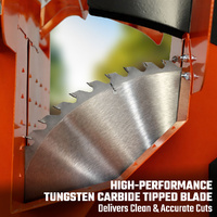 High-performance circular blade: 700mm diameter tungsten carbide tipped blade effortlessly cuts timber up to 270mm in diameter.