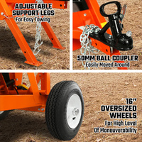 Portable & towable design: equipped with 16” oversized wheels and towing hitch for easy transport around worksites.