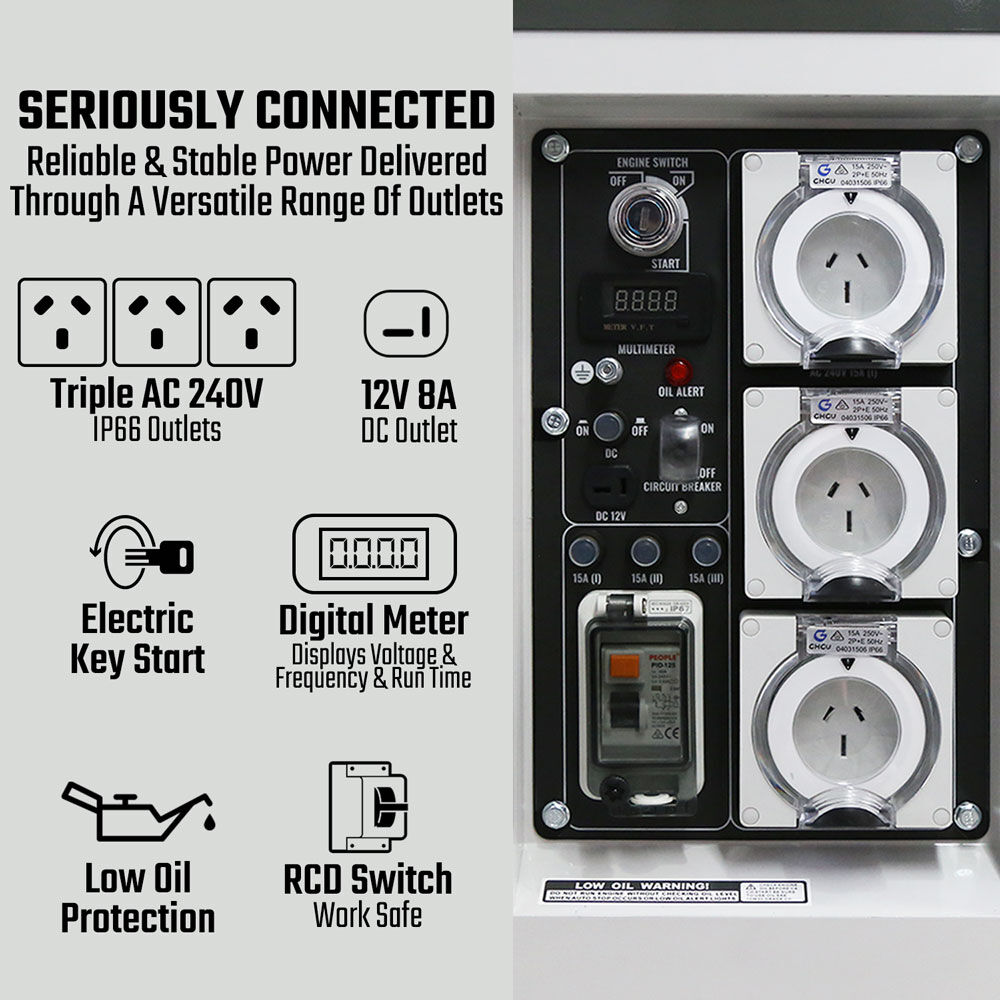Ideal for home backup, job sites & outdoor events.