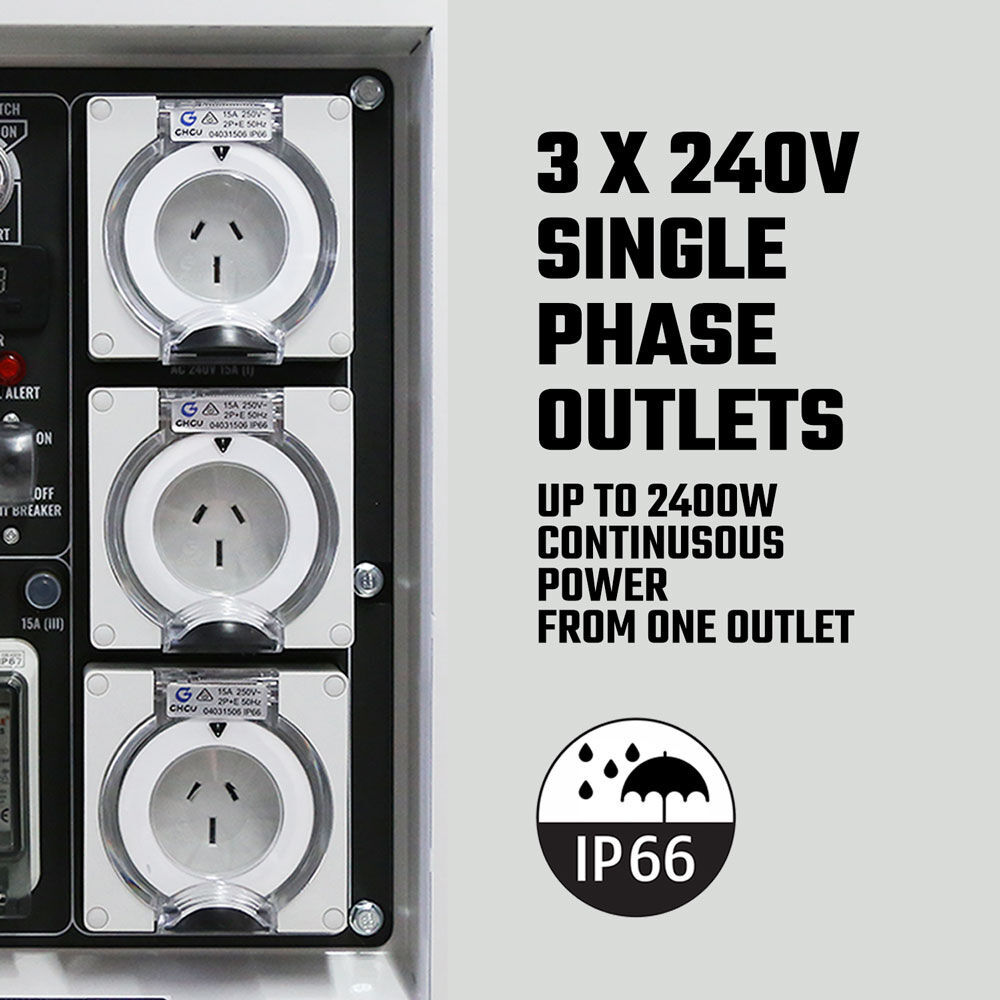 Triple weather-protected AC outlets: allows multiple devices and tools to be powered simultaneously.