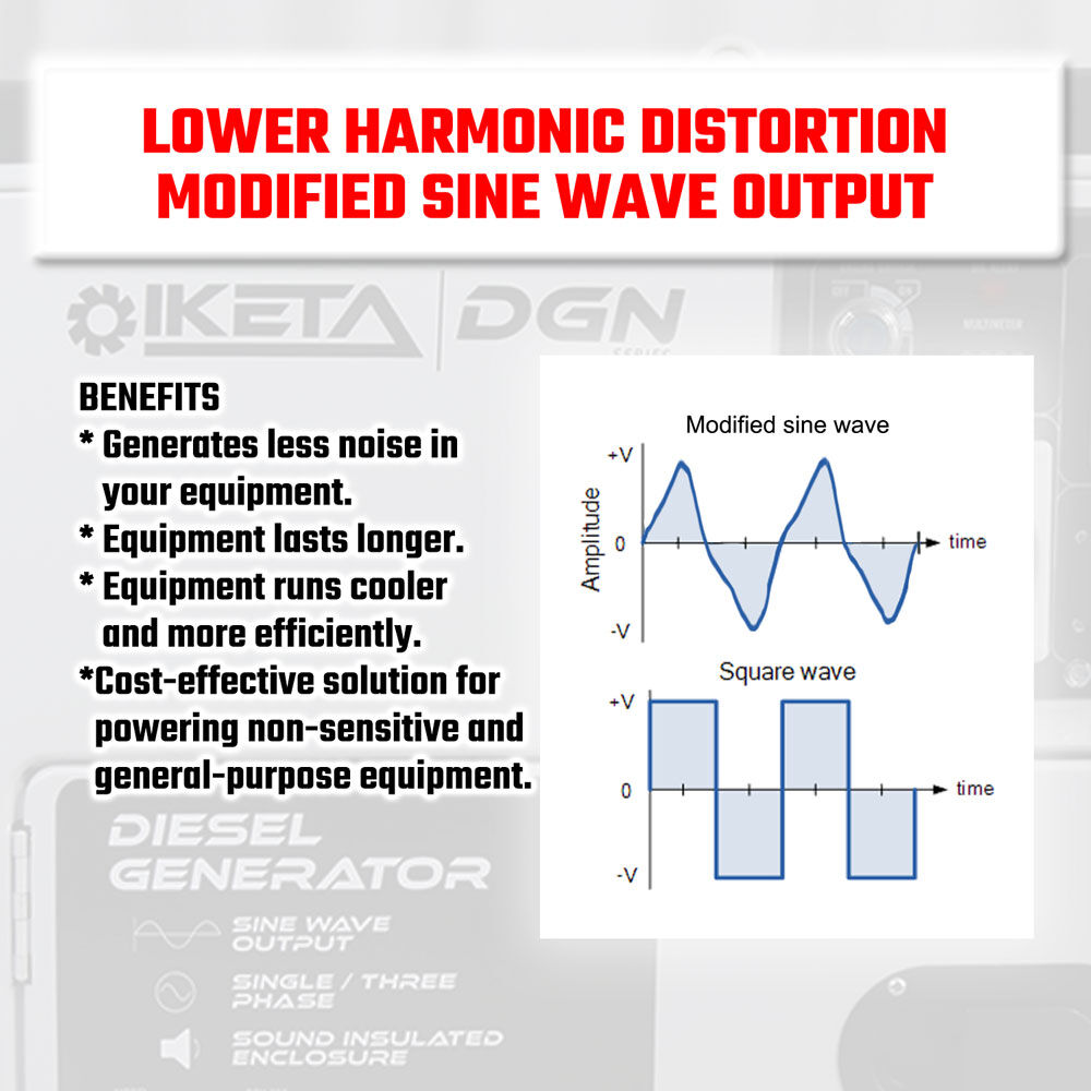 Modified sine wave output: delivers smooth, quiet, and efficient power, with reduced electrical noise and heat, making it suitable for a wider range of general-purpose equipment.