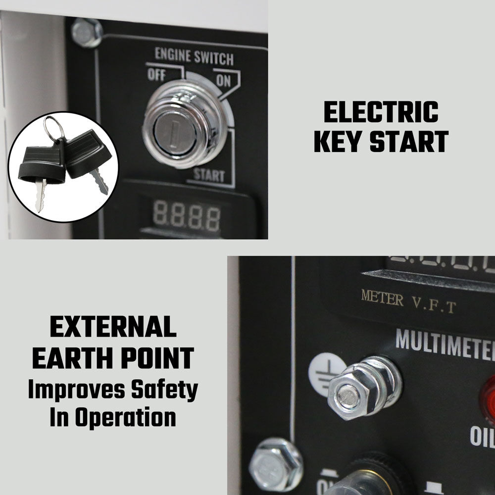 Digital meter: Clearly displays voltage, frequency and running hours for easy monitoring and maintenance.