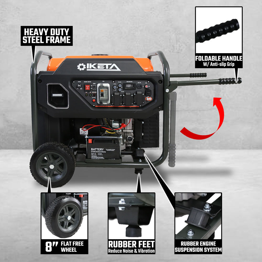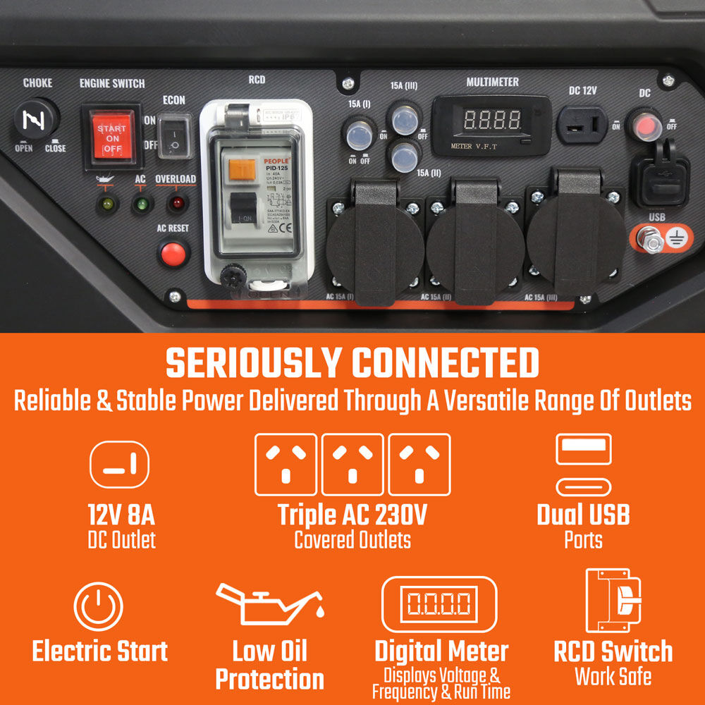 Petrol Inverter Generator 9000W Max Sine Wave 16HP RCD Camping Worksite Backup