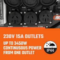 Triple weather-protected AC outlets: allows multiple devices and tools to be powered simultaneously.